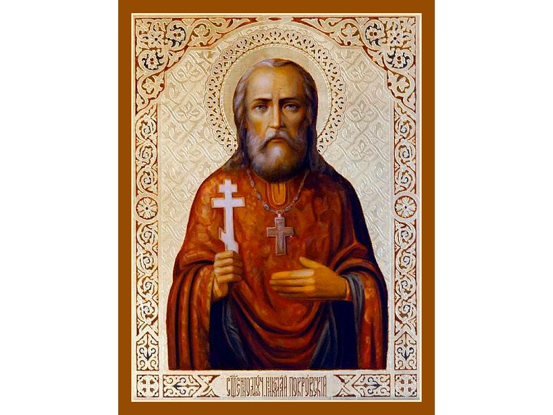 Священномученик Николай Покровский Николай Покровский — сын священника, в 25 лет, в 1889 окончил Симбирскую духовную семинарию, год служил псаломщиком при храме села Шерауты Буинского уезда Симбирской епархии. Женился. В 1891 году рукоположен сначала во диакона, а через некоторое время — и во священника.