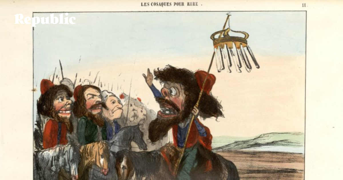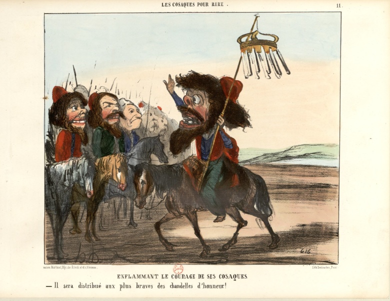 “Самые храбрые казаки будут награждены почетными свечами!” Изображение русских как нелепых варваров было стандартным приемом французской пропаганды времен Крымской войны.