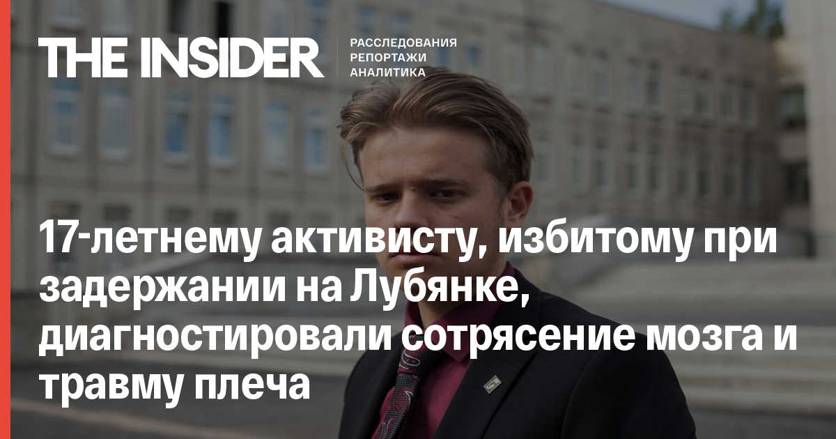 17-летнему организатору профсоюза «Ученик» Леониду Шайдурову, которого избили при задержании во время акции у здания ФСБ на Лубянке, диагностировали сотрясение мозга, смещение костяшки на руке, а также травму плеча. Об этом Шайдуров рассказал в интервью The Insider.