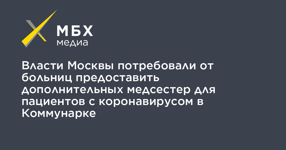 Департамент здравоохранения Москвы разослал письмо в государственные медучреждения города, в котором потребовал от них предоставить палатных медсестер для больницы в Коммунарке, где находятся пациенты с коронавирусом. Об этом сообщил «МБХ медиа» источник в одной из больниц.