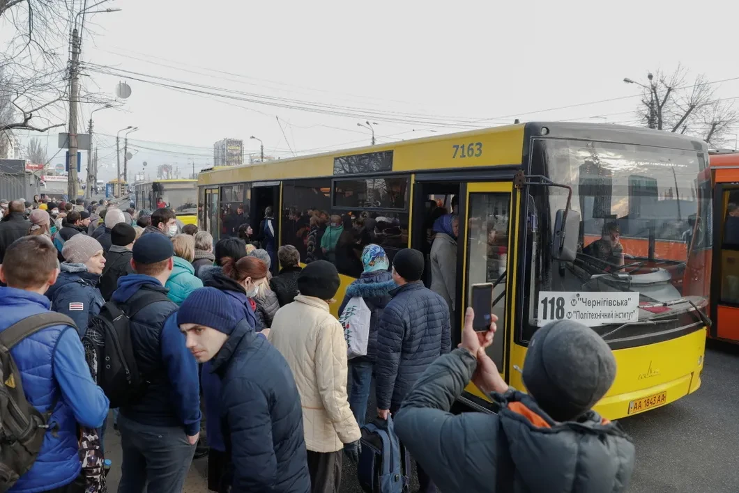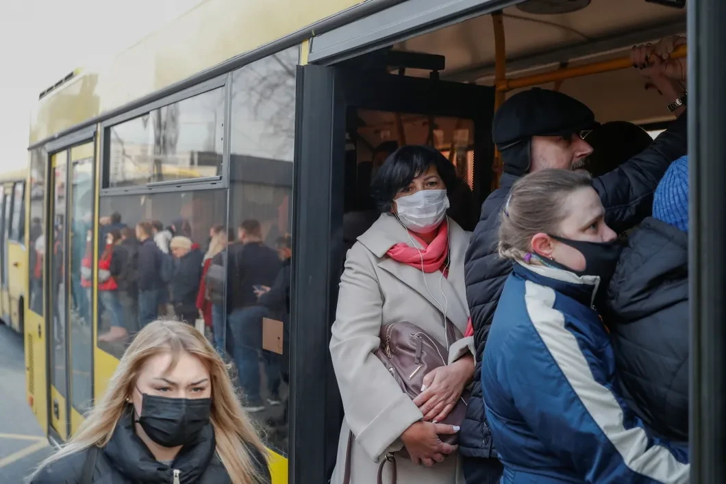 Женщина в красной куртке, растрепанная, красная, без медицинской маски — какая уж тут маска! — в последний раз толкает в спину похожую куртку, которая оказалась последней в двери набитой маршрутки, едущей от станции метро «Нивки» в центр города (это довольно далеко, шесть остановок, если подземкой!), и опускает руки. Может, удастся попасть в троллейбус… Его не видно, а люди прибывают с каждой минутой, выстраиваются в «хвост». Кто-то предлагает сразу разделиться на десятки.