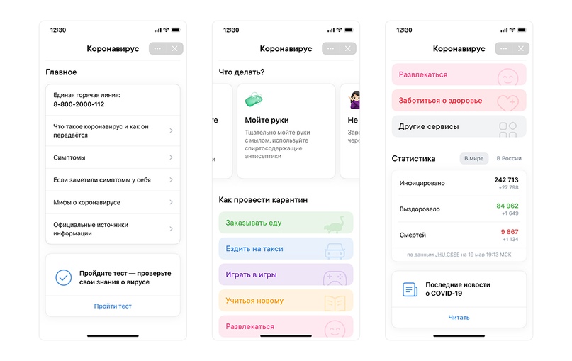 Также в приложении можно открыть тематическую ленту о коронавирусе с постами из проверенных источников. В дальнейшем там будут отслеживать изменение числа заражений или отмену крупных мероприятий.