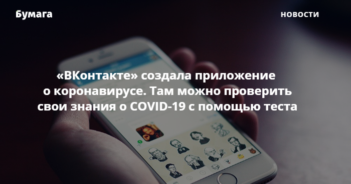 «ВКонтакте» создала единый центр информации по коронавирусу — это мини-приложение, где собраны основные данные о способах передачи, симптомах и мифах о COVID-19. Об этом «Бумаге» рассказали представители соцсети.