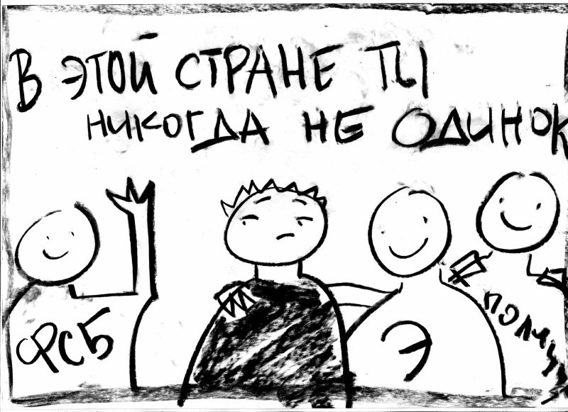 Сергей Наумов раньше работал в местном штабе Навального, а теперь состоит в «Открытой России». С Юлей они иногда пересекались по вопросам активизма и в меру сил поддерживали деятельность друг друга. «Я поддерживал Юлю, был на суде, стоял с пикетом, — говорит Наумов. — Когда сидел в камере, меня самого считали геем, раз я поддерживаю феминистку и ЛГБТ-активистку, хотя я гетеросексуал и у меня есть девушка. У нас тут в Комсомольске все совком пропитано, хотя город построен репрессированными. И суды, думаю, стряпают эти дела даже без телефонных указаний, — это местное начинание. Я искренне убежден, что это преследование выдуманное и никакой порнографии в этих рисунках нет, и никакой ЛГБТ-пропаганды в ее театре не было».