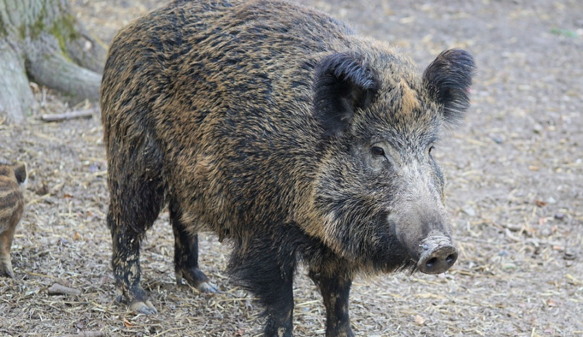 На видео кабан не боится людей и спокойно передвигается вблизи них. Подобное поведение не свойственно диким животным.