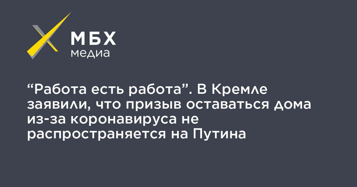 «Работа есть работа, тем более работа президента, конечно же, осуществляется вне тех критериев, которые указаны в ограничивающих и рекомендательных документах», — сказал Песков, кода его спросили, не намерен ли Путин в качестве примера самоизолирваться в своей квартире.