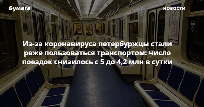21 марта «Фонтанка» писала, что из-за коронавируса пассажиропоток в петербургском метро снизился до 1,84 миллиона человек. Схожая ситуация наблюдается и на других видах общественного транспорта, в том числе железнодорожном и воздушном.