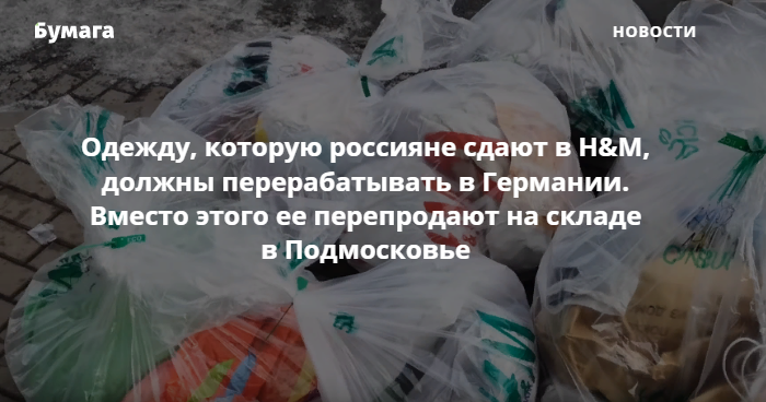 Одежду, которую россияне сдают в H&M, не попадает на переработку — эти вещи можно приобрести на складе в Подмосковье. Это следует из расследования журналистки Елены Володиной, опубликованного на ее ютьюб-канале.