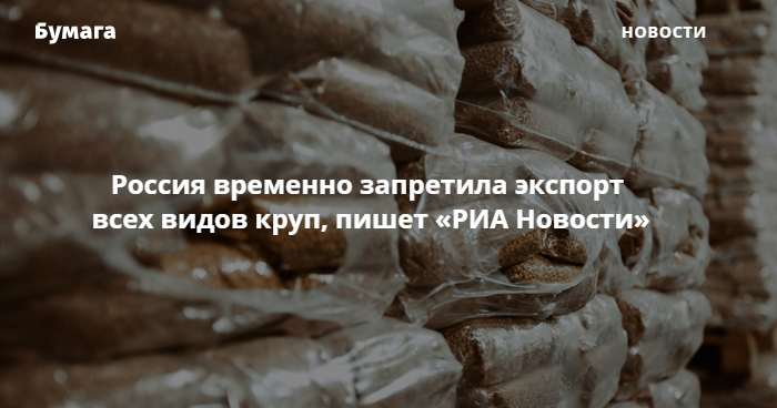 «Коммерсантъ» пишет, что запрет затронет в основном экспортеров риса, так как поставок гречки на иностранные рынки фактически нет.
