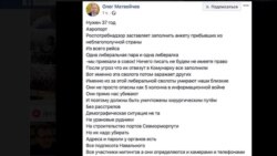 Матвейчев описал сцену в аэропорту, где пассажиров, прилетевших из неблагополучной по пандемии коронавируса страны, заставляют заполнить анкеты. Трое пассажиров отказываются, но под угрозой помещения в карантин заполняют документ.