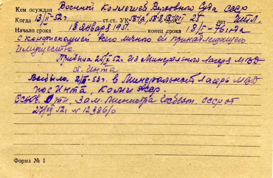 «Он нашел начальника, пришел к нему с подарком, а там и задал вопрос, сидела у него такая-то или нет. Получив утвердительный ответ, он прямо попросил начальника выдать ему справку, что бабушка там работала. Начальник, ошалев от такой смелости и наглости, справку выдал. В таком документе, конечно, не было отметки, что она работала там, будучи заключенной. И бабушку приняли в институт».