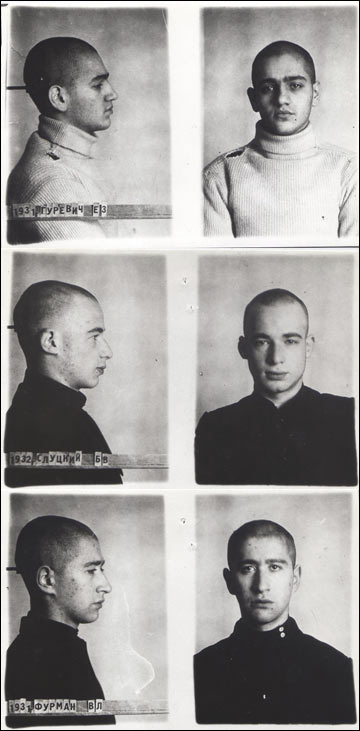 Тюремные фотографии расстрелянных по делу «Союза борьбы за дело революции» Евгения Гуревича, Бориса Слуцкого и Владилена ФурманаФото: ru.wikipedia.org
