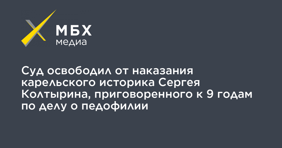 Медвежьегорский районный суд освободил от наказания бывшего директора местного музея Сергея Колтырина, осужденного по делу о педофилии, сообщает «Столице на Онего».