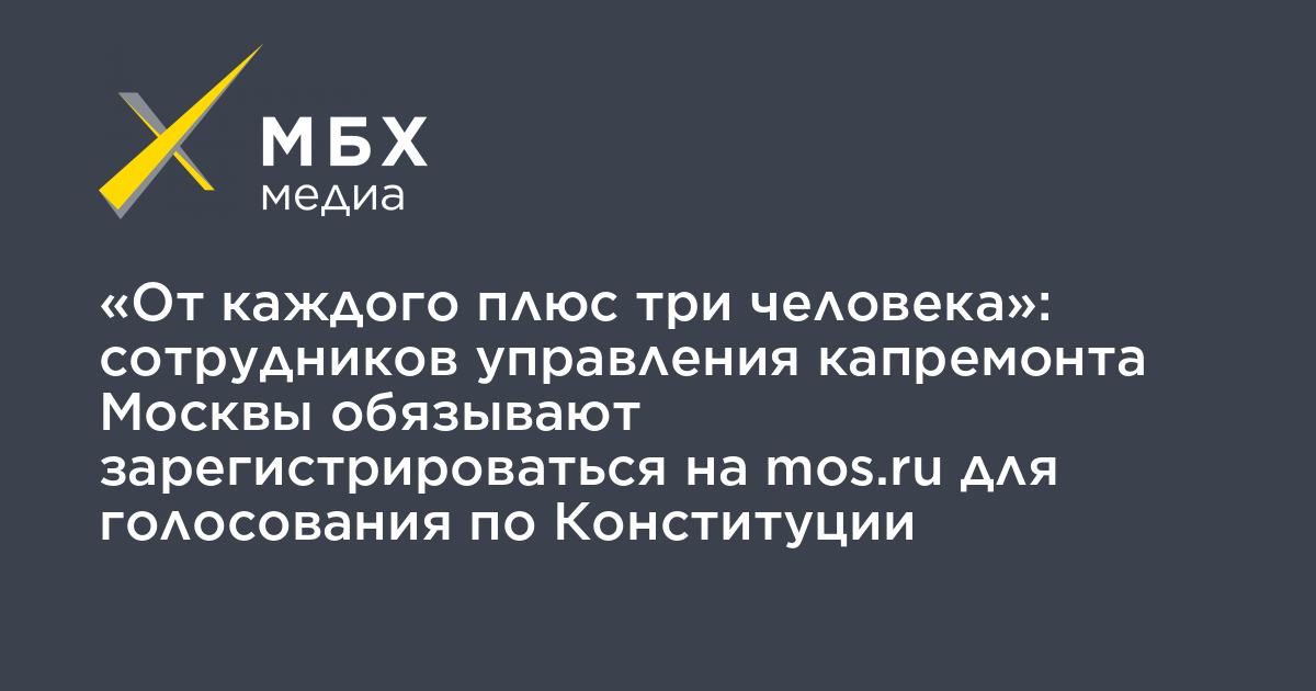 «От каждого плюс три человека»: сотрудников управления капремонта Москвы обязывают зарегистрироваться на mos.ru для голосования по Конституции