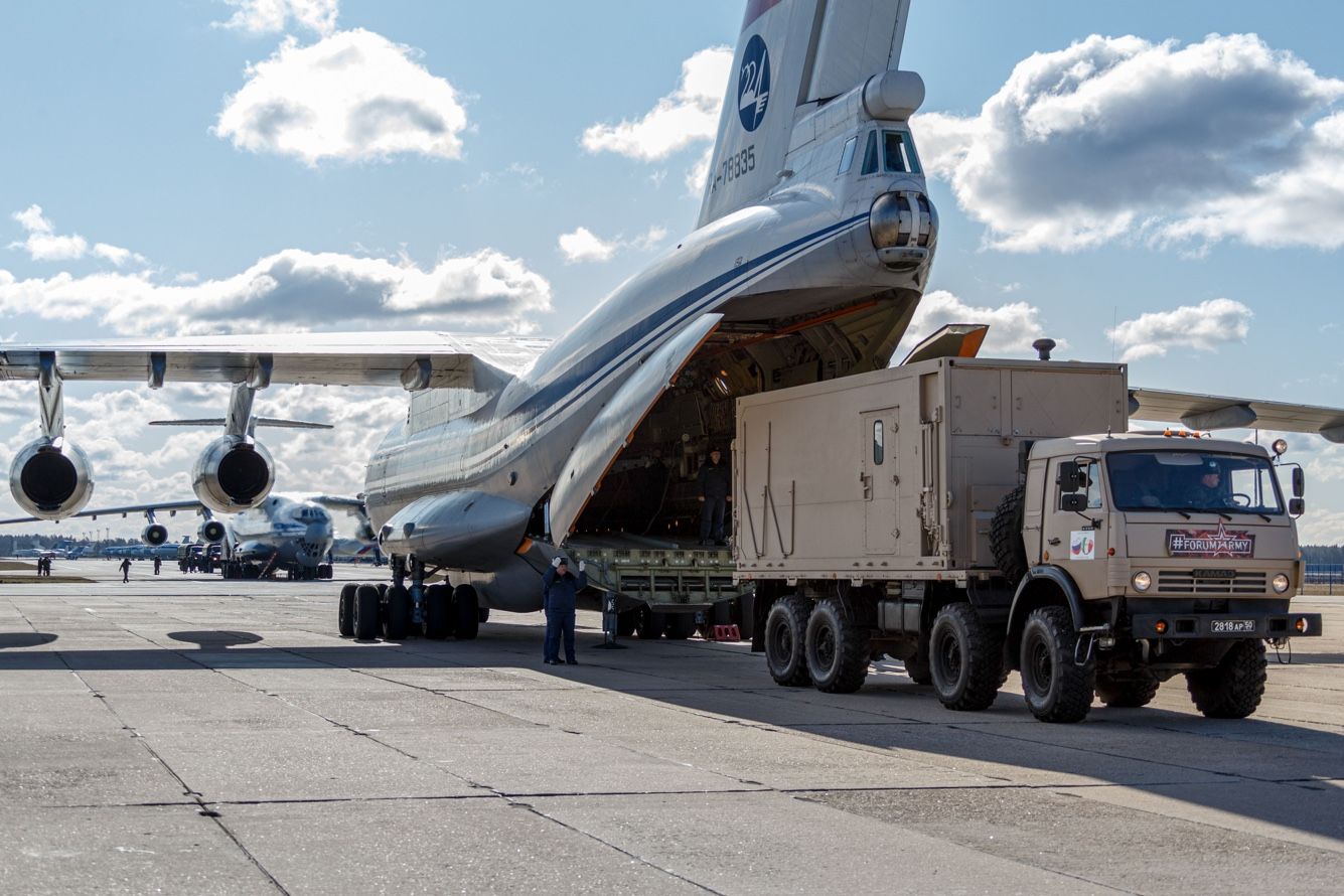 Россия решила помочь Италии в борьбе с эпидемией коронавирусной инфекции COVID-19. Об этом объявили после телефонного разговора президента РФ Владимира Путина и премьер-министра Италии Джузеппе Конте, состоявшегося 21 марта. Первые транспортные самолеты Ил-76 Минобороны РФ прибыли на авиабазу ВВС Италии Пратика-ди-Маре под Римом 22 марта. К ночи 24 марта в страну прилетели 14 российских военных самолетов. Сенатор Алексей Пушков заявил в твиттере, что власти Польши якобы не пустили самолеты России в свое воздушное пространство. Замглавы МИД Польши Марчин Пшидач это опроверг. Пушков удалил свой твит (он есть в кэше).