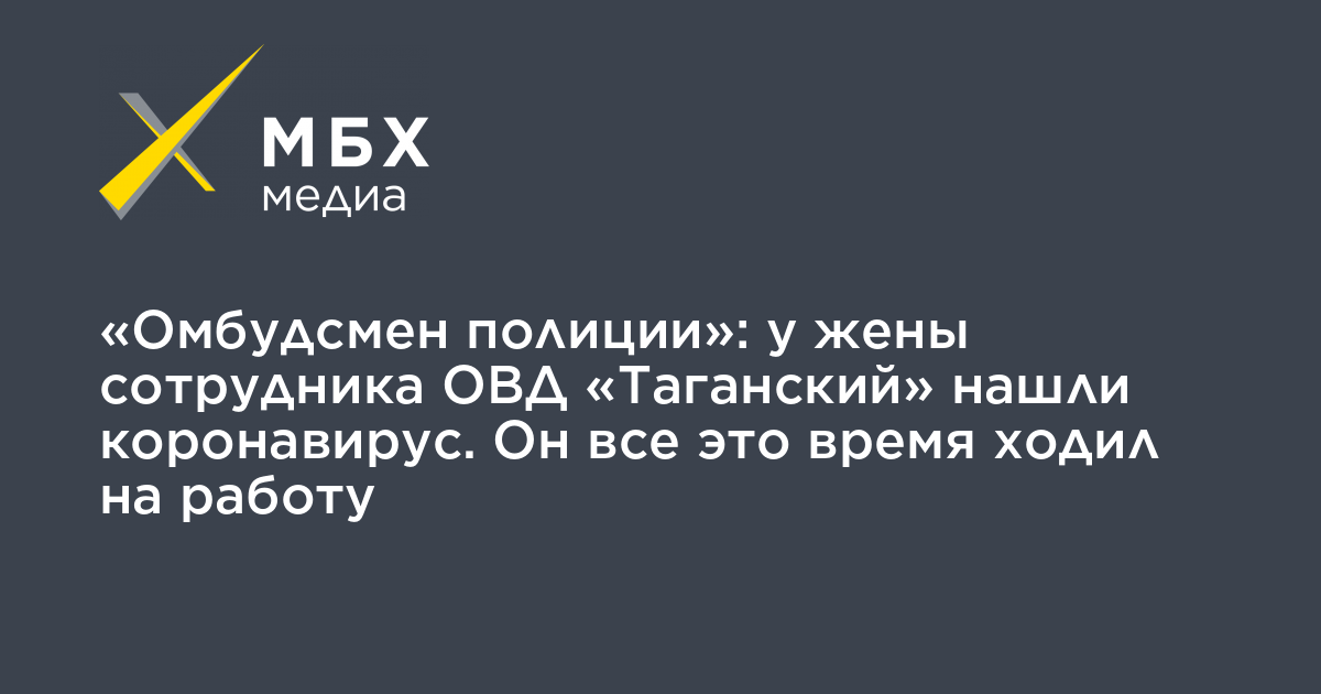 «Омбудсмен полиции»: у жены сотрудника ОВД «Таганский» нашли коронавирус. Он все это время ходил на работу