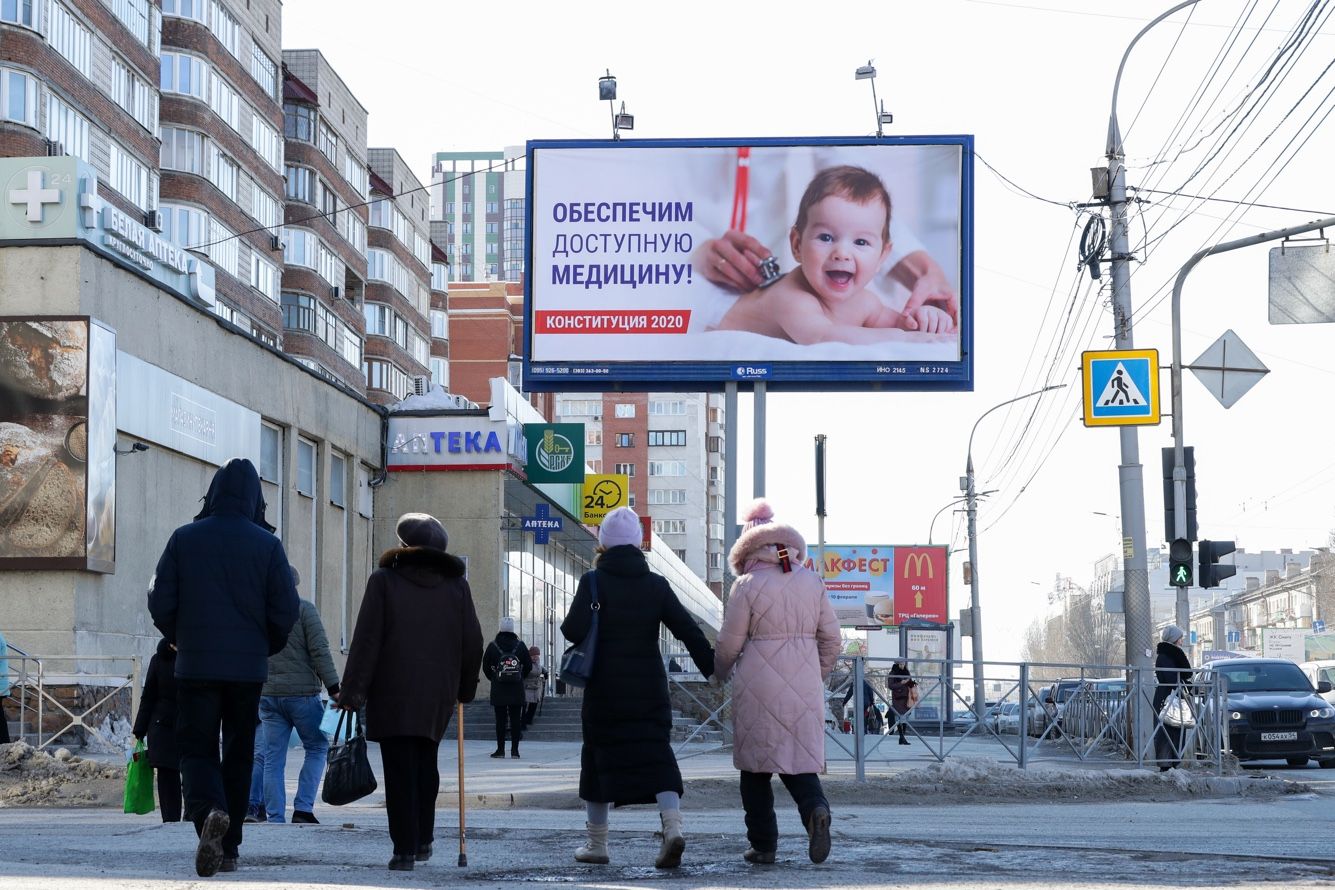 Кирилл Кухмарь / ТАСС / Scanpix / LETA В регионах России уже появились билборды в поддержку поправок в Конституцию, однако даты голосования на них нет