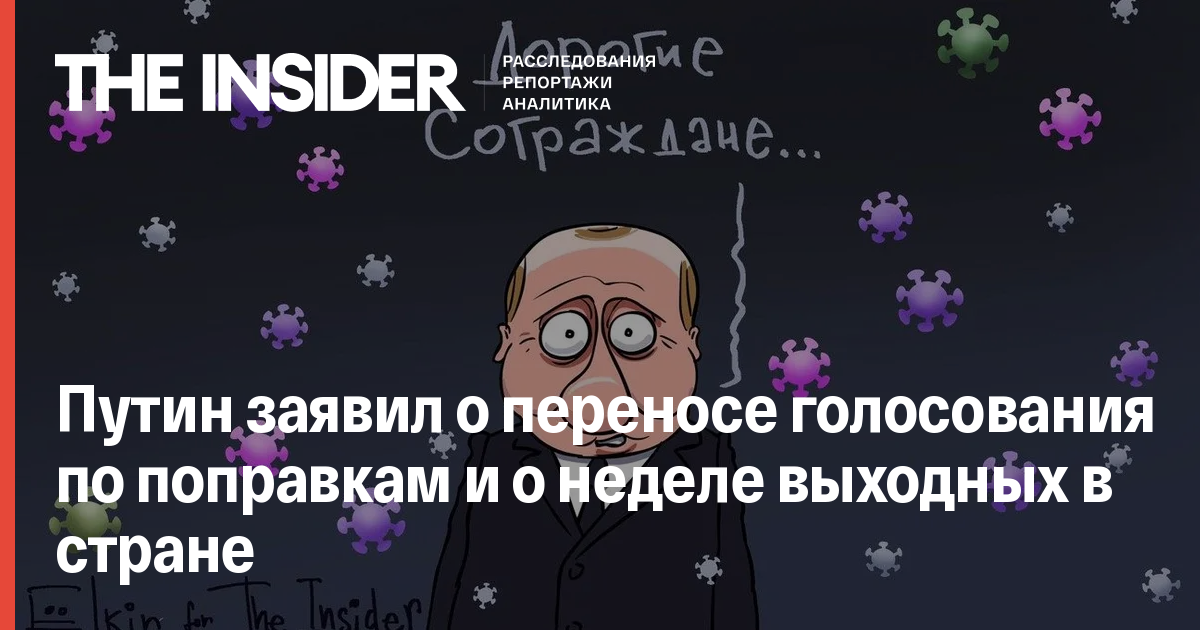 Владимир Путин в своем обращении к россиянам в связи с эпидемией коронавируса объявил, что голосование по поправкам в Конституцию, позволяющим обнулить его президентские сроки, будет перенесено. По его словам, голосование будет перенесено «на более позднюю дату», конкретное решение будет принято позже.