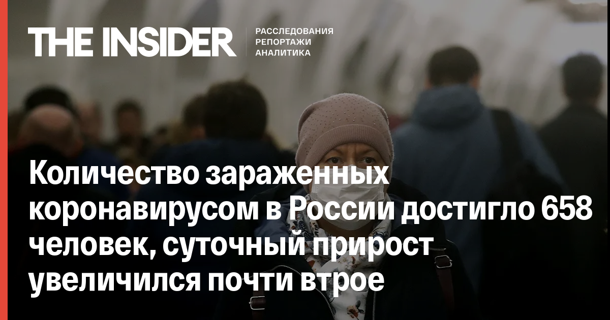 Количество зараженных коронавирусом в России достигло 658 человек, суточный прирост увеличился почти втрое