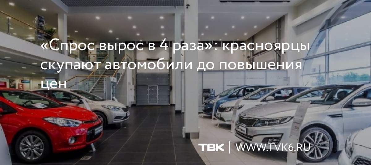 Источник «ТВК Красноярск» в дилерском центре Toyota также подтвердил ажиотаж.Так, представитель дилерского центра KIA, рассказал «ТВК Красноярск», что после объявления о росте цен спрос на машины всех ценовых категорий вырос примерно в 4 раза. Сейчас по старым ценам распродают автомобили 2019 г. выпуска. Такая же ситуация в салонах Skoda. Однако, как отмечают представители, несмотря на высокий спрос, дешевые автомобили еще есть в наличии.