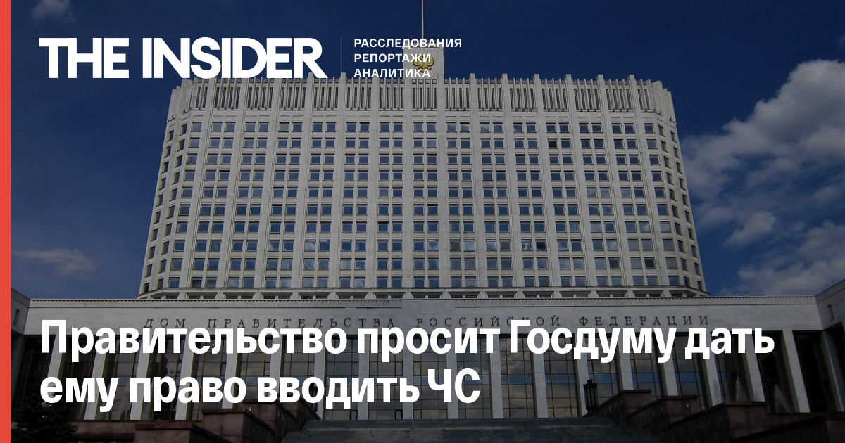 Правительство внесло в Госдуму законопроект, который наделяет кабинет министров полномочиями по введению режимов повышенной готовности и чрезвычайной ситуации на территории России. Соответствующий законопроект опубликован в базе документов Госдумы.