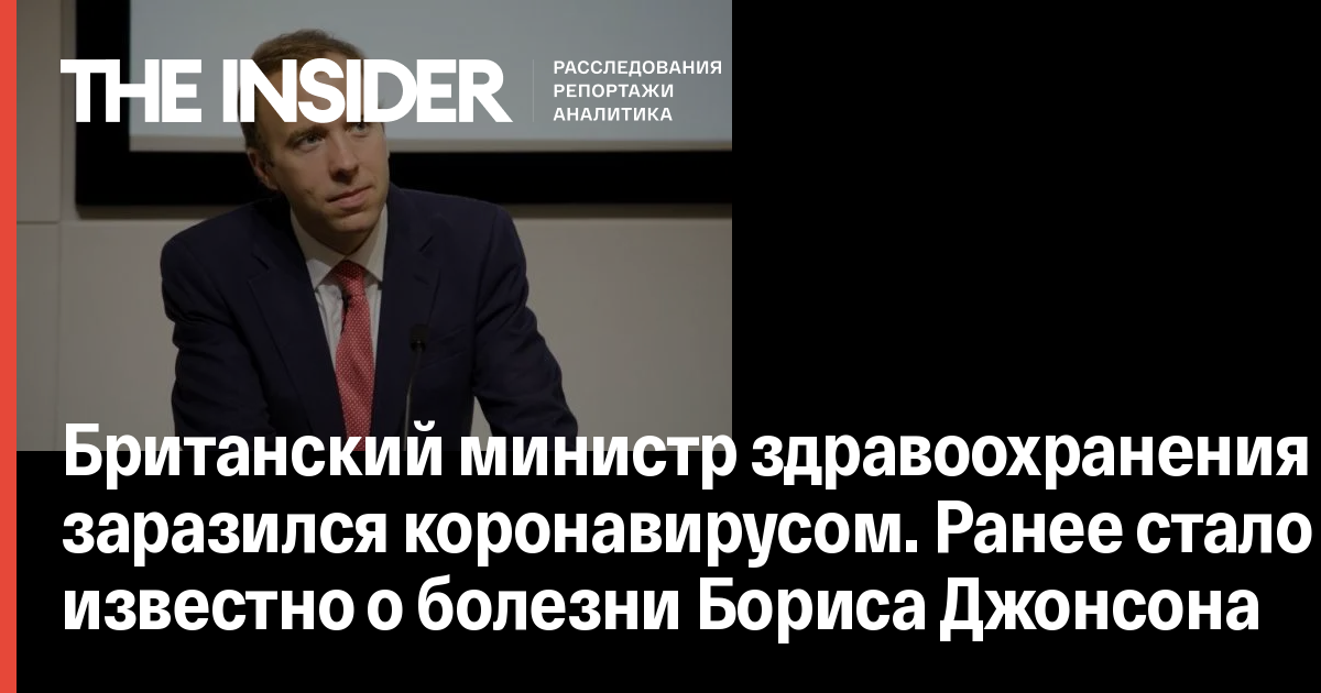 Министр здравоохранения Великобритании Мэтт Хэнкок также заразился коронавирусом и самоизолировался.