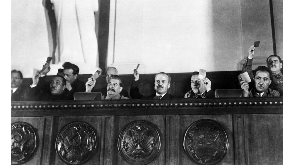 Прошло двенадцать лет, и накануне Большого террора появилась куда более демократичная конституция. «Систему выборов надо менять не только в смысле уничтожения ее многостепенности. Ее надо менять еще и в смысле замены открытого голосования закрытым (тайным) голосованием». Кто написал такие прекрасные слова? Товарищ Сталин, отец народа. Кто написал основной текст конституции, в которой провозглашалось введение всеобщего, равного и прямого избирательного права при тайном голосовании и гарантировались все важнейшие свободы — совести, слова, печати, собраний — и даже неприкосновенность личности? — Бухарин, который будет арестован в феврале 1937 года, через неполных три месяца после принятия прекрасной конституции. Кто обсуждал и вносил поправки в конституцию? Да весь советский народ — 75 миллионов участвовали в обсуждениях, было опубликовано полтора миллиона поправок. Тот самый народ, который в это время гнали по этапу, избивали в камерах, гноили в лагерях. Те, кто стоял по ночам у окна, прислушиваясь к шуму колес на улице и вздыхая с облегчением: Пронесло. Сегодня не за мной.