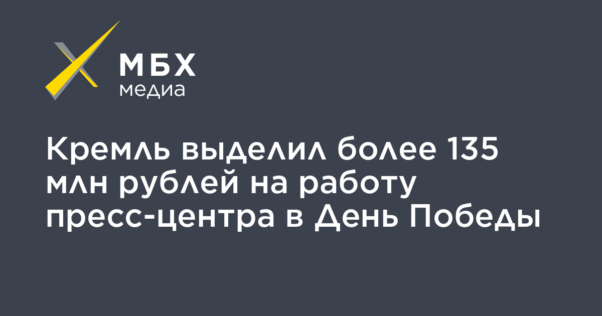 Управление делами президента выделило 135,6 млн рублей на организацию работы международного пресс-центра во время празднования 75-й годовщины победы в Великой Отечественной войне 9 мая. Соответствующий контракт «МБХ медиа» обнаружило на портале госзакупок.