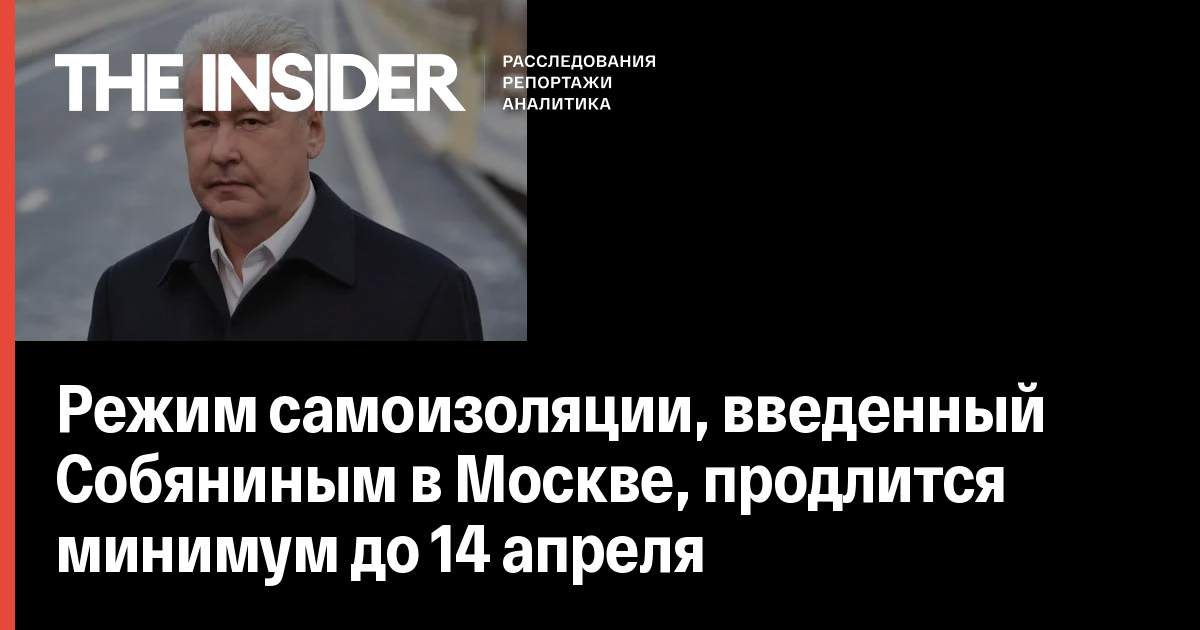 Режим самоизоляции, введенный Собяниным в Москве, продлится минимум до 14 апреля