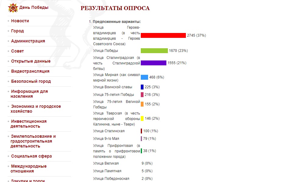 На сайте городской администрации закончилось голосование по выбору патриотического названия для новой городской улицы.