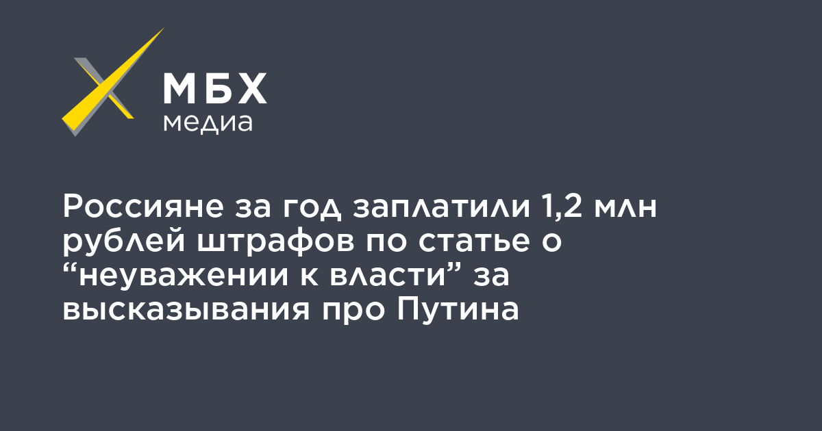 Россияне за год заплатили 1,2 млн рублей штрафов по статье о «неуважении к власти» за высказывания про Путина