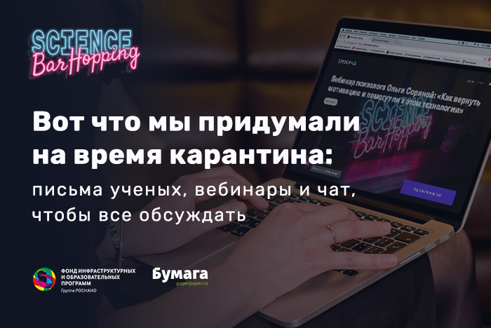Ранее Фонд инфраструктурных и образовательных программ (Группа РОСНАНО) и медиакомпания «Бумага» проводили бесплатный научно-популярный фестиваль Science Bar Hopping. Проект возобновится после пандемии.