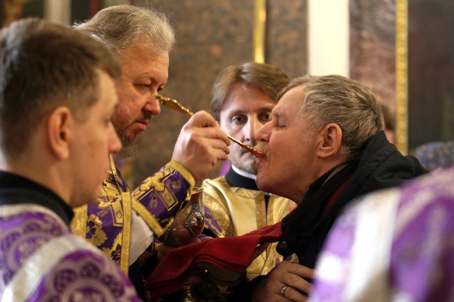 Санкт-Петербург. Исаакиевский собор. Последнее богослужение перед закрытием на карантинФото: Алексей Смагин/Интерпресс/PhotoXPress.ru Этот спектакль во время эпидемии уже репетировали. 11 марта, когда на севере Италии служили за закрытыми дверями, Синод РПЦ принял очень сдержанное, обтекаемое «Заявление в связи с распространением коронавирусной инфекции», в котором есть ключевая фраза: «Во времена эпидемий Русская Православная Церковь всегда несла свое свидетельское служение, не отказывая никому в духовном окормлении и полноценном участии в Ее Таинствах». «Полноценное участие» означает сохранение богослужебных практик в полном объеме. В публичном пространстве заявлению Синода предшествовала пресс-конференция в РИА «Новости», где председатель Учебного комитета РПЦ, протоиерей Максим Козлов категорично и четко заявил, что через причастие заразиться нельзя, впрочем, «эта вера не настолько расширительна, чтобы считать, что эпидемиологические заболевания православных верующих не касаются»