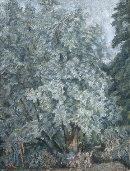 Д.Е. Загоскин (1900–1942). Пейзаж с деревом. 1930-е. Собрание С.Б. Ласкина Если же вернуться к «Роману со странностями», то это тот случай, когда нужно знать предысторию. Отец взялся за эту тему и, уже написав большую часть текста, понял, что лакун слишком много, а заполнить их нечем. И вдруг — словно кто-то решил ему помочь — в его жизни появляются экстрасенсы. Уж они-то все в точности знают! Что ни спросишь, тут же дают ответ. Причем сами выступают как посредники, а настоящим источником информации являются герои книги… Таким образом роман был спасен, но считать это решение приемом отец не хотел. Для этого он был слишком искренним человеком. Он, представьте себе, поверил! Или заставил себя поверить. И это при всем своем медицинском образовании. Будучи автором чеховской школы (лучшее, что он написал, — это рассказы), отец был чужд литературным ухищрениям. Самое ругательное слово для него было — «литературщина».