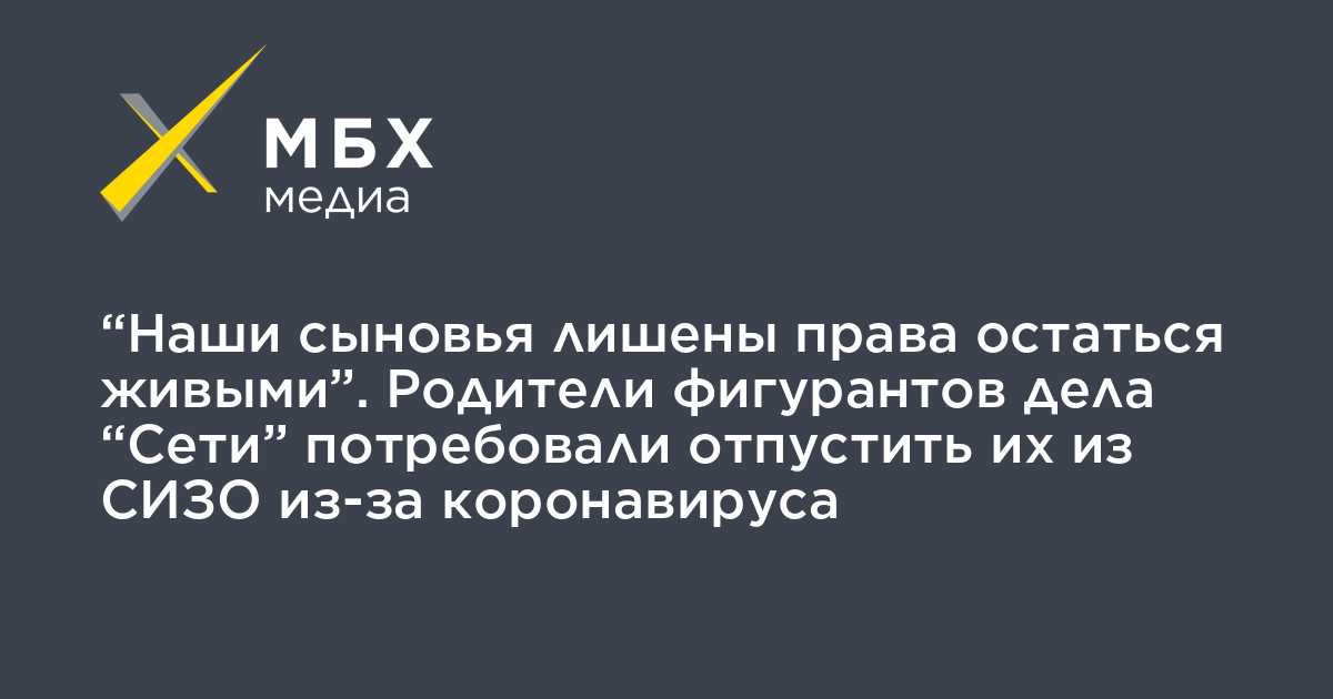 «Наши сыновья лишены права остаться живыми». Родители фигурантов дела «Сети» потребовали отпустить их из СИЗО из-за коронавируса