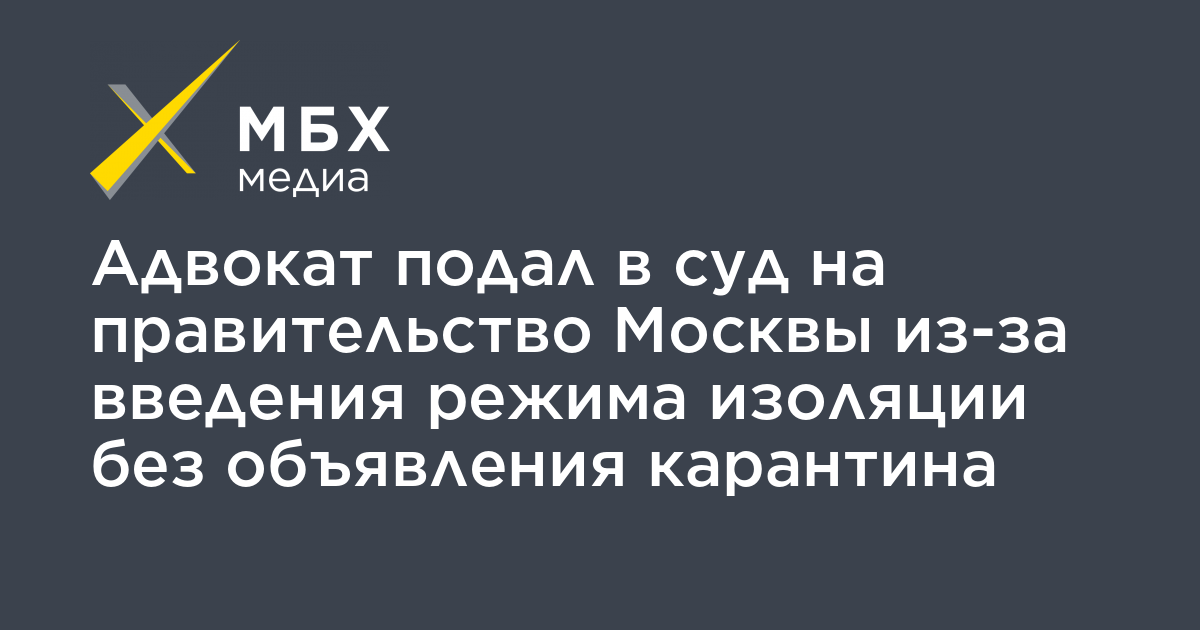 Адвокат Мансур Гильманов и активист Дмитрий Кисиев подали административный иск в Мосгорсуд к правительству Москвы, в котором потребовали признать незаконным введение в столице режима изоляции без объявления карантина. Об этом Гильманов рассказал «МБХ медиа»