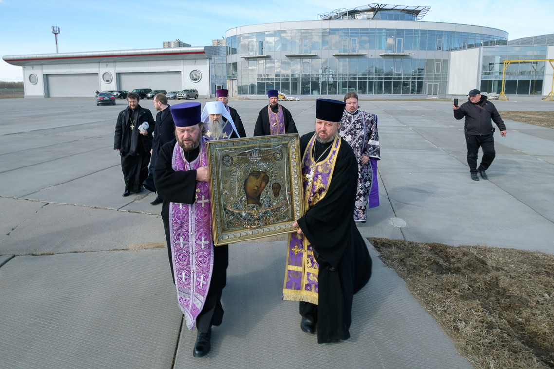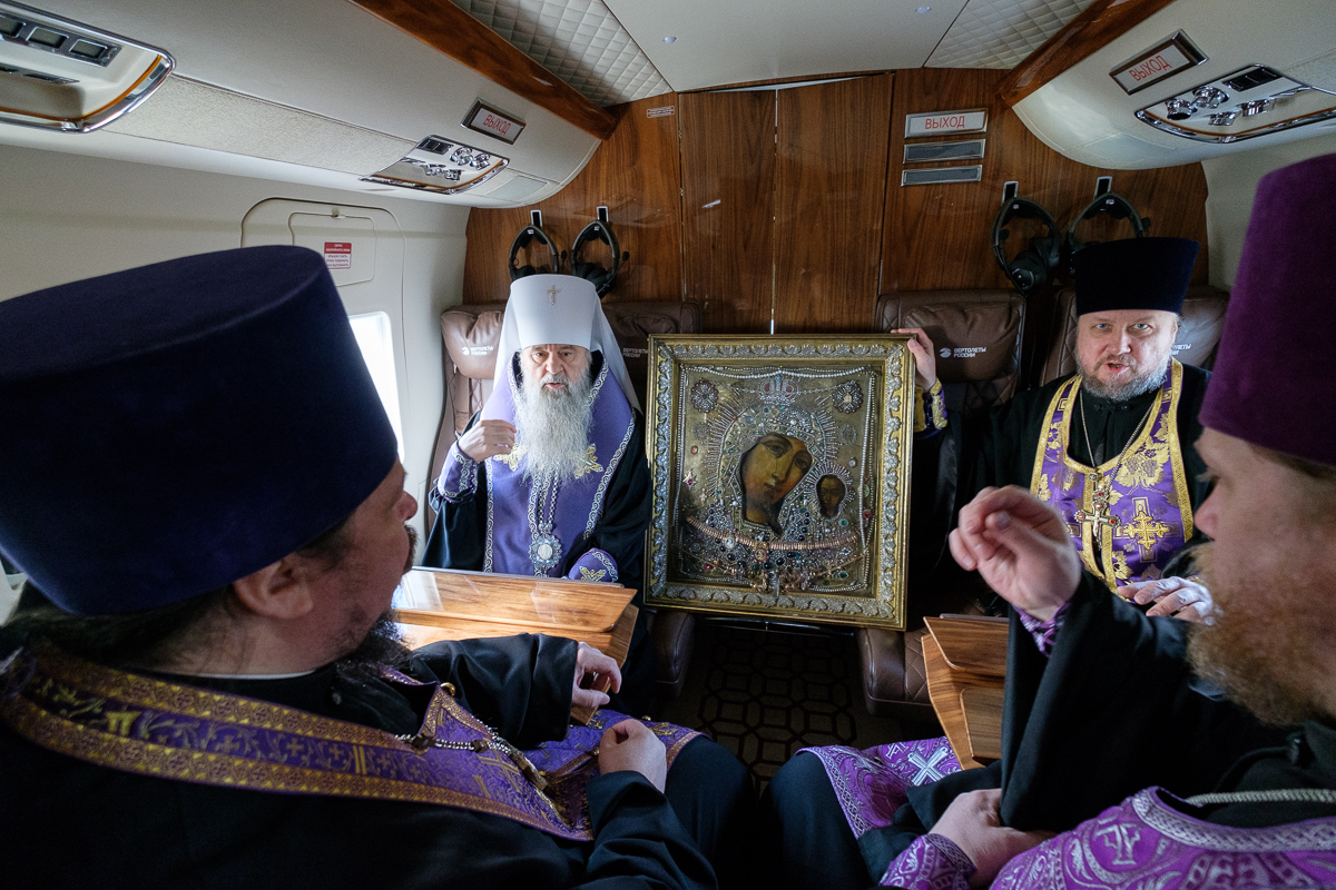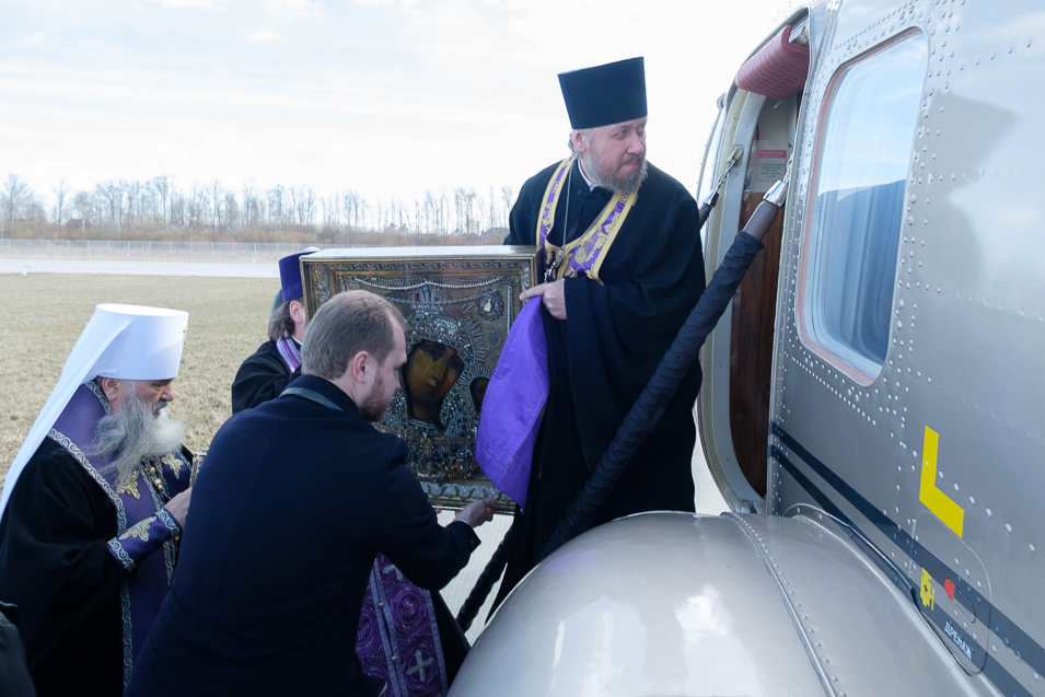 Митрополит Петербургский и Ладожский Варсонофий 31 марта отслужил молебен перед Казанской иконой Божией Матери. После этого образ доставили на вертолет, сообщает пресс-служба епархии.