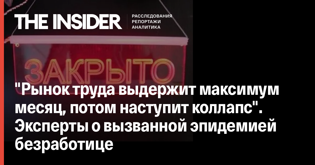 На прошлой неделе Владимир Путин отправил всю страну на каникулы, перестали работать рестораны, бары и торговые центры, и за несколько дней тысячи людей остались без работы и средств к существованию. Бизнес в России несет сокрушительные потери из-за эпидемии коронавируса. Эксперты рассказали The Insider, как долго в такой ситуации может сохраниться рынок труда.