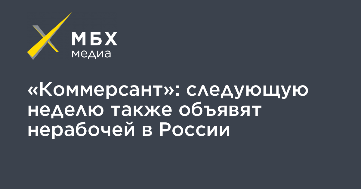 «Коммерсант»: следующую неделю также объявят нерабочей в России