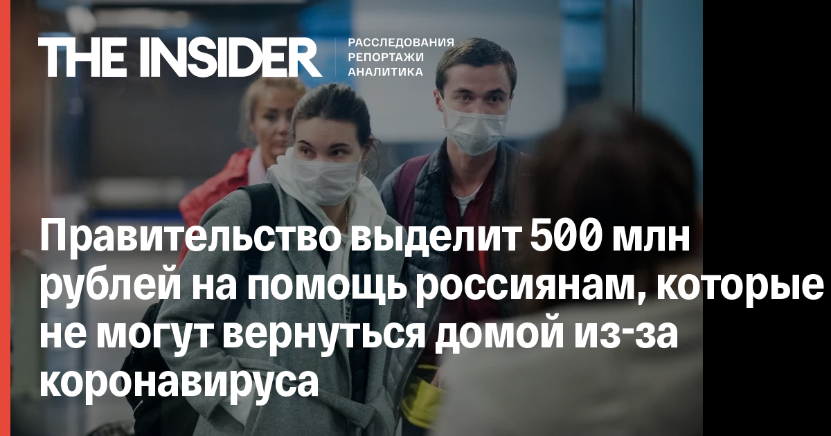 Премьер-министр России Михаил Мишустин в ходе заседания Правительства заявил, что правительство выделит полмиллиарда рублей в целях поддержки россиян, которые не могут вернуться домой из-за пандемии коронавируса. Об этом говорится на сайте правительства.