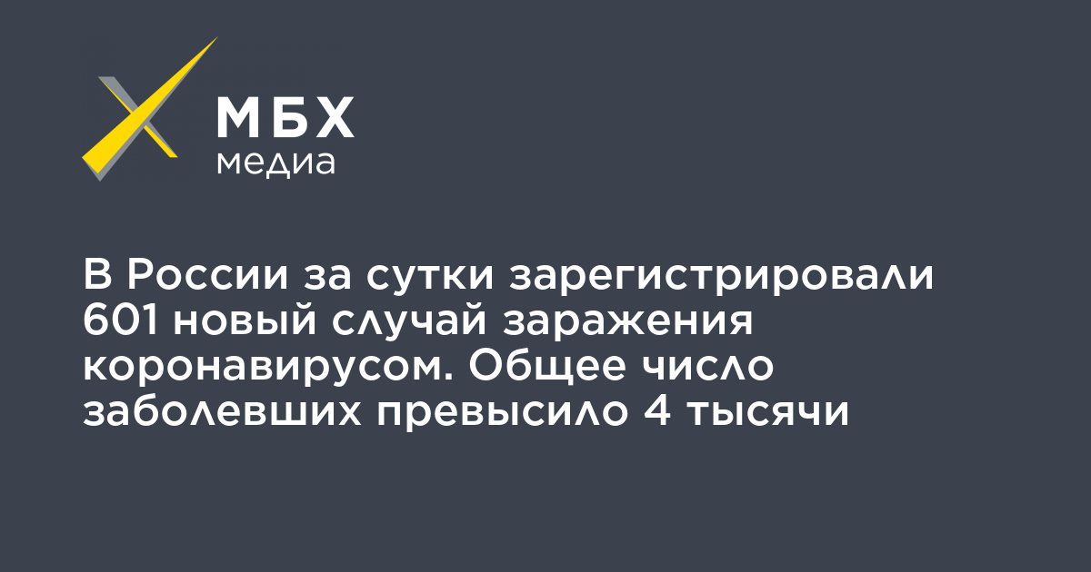 В России за сутки зарегистрировали 601 новый случай заражения коронавирусом. Общее число заболевших превысило 4 тысячи