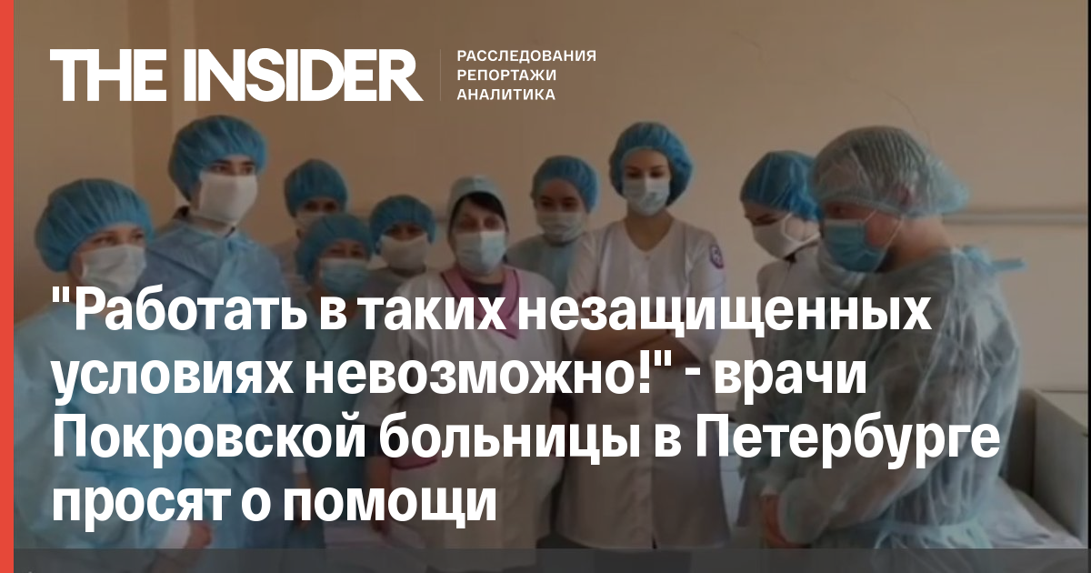 Врачи Покровской больницы в Санкт-Петербурге записали коллективное видеообращение и попросили о помощи после того, как их больницу перепрофилировали на работу с больными с пневмониями. Врачам не хватает средств защиты и препаратов, а в палаты, как они говорят, даже не проведен кислород. Руководство грозит им за жалобы разборками, пишет «Фонтанка».