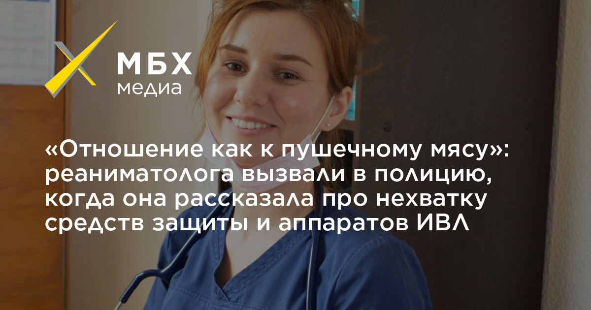 Врач-реаниматолог Татьяна Ревва из Калача-на-Дону Волгоградской области пожаловалась в профсоюз «Альянс врачей» на плохое оснащение больницы. Она рассказала, что в Центральной районной больнице города почти нет средств индивидуальной защиты (СИЗ), не хватает аппаратов искусственной вентиляции легких (ИВЛ). Но вместо того, чтобы пытаться исправить ситуацию, начальство написало на нее заявление в полицию и прокуратуру, а также угрожало увольнением. Мы поговорили с доктором и узнали, что происходит в больнице и почему ее допрашивает полиция.