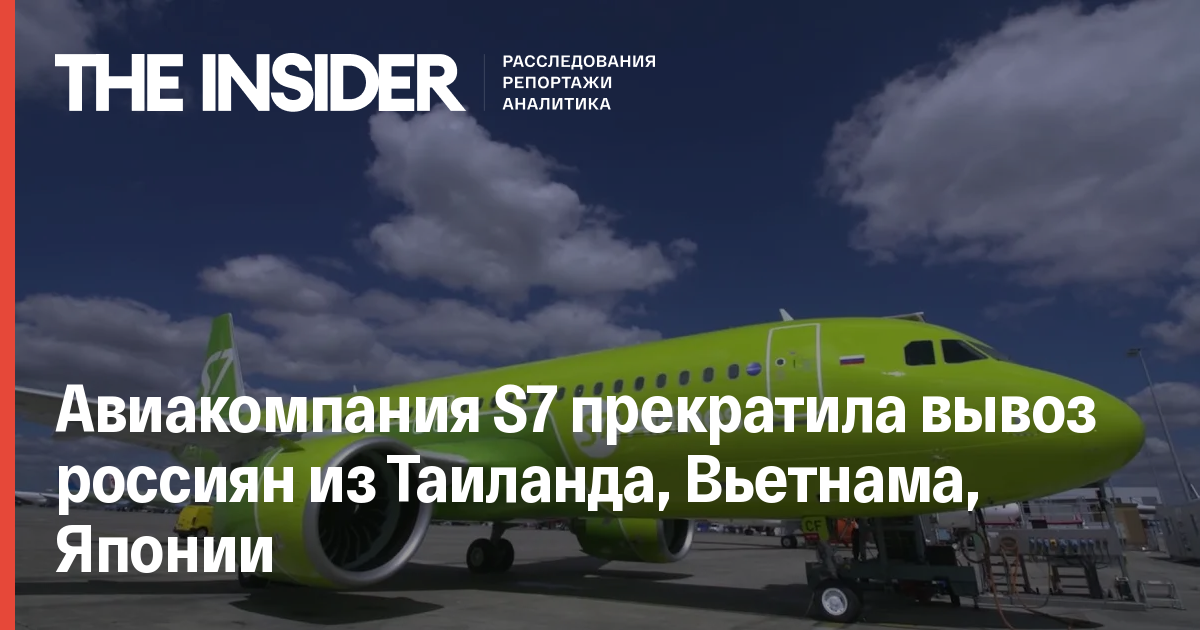 Авиакомпания S7 прекратила вывоз россиян из Таиланда, Вьетнама, Японии