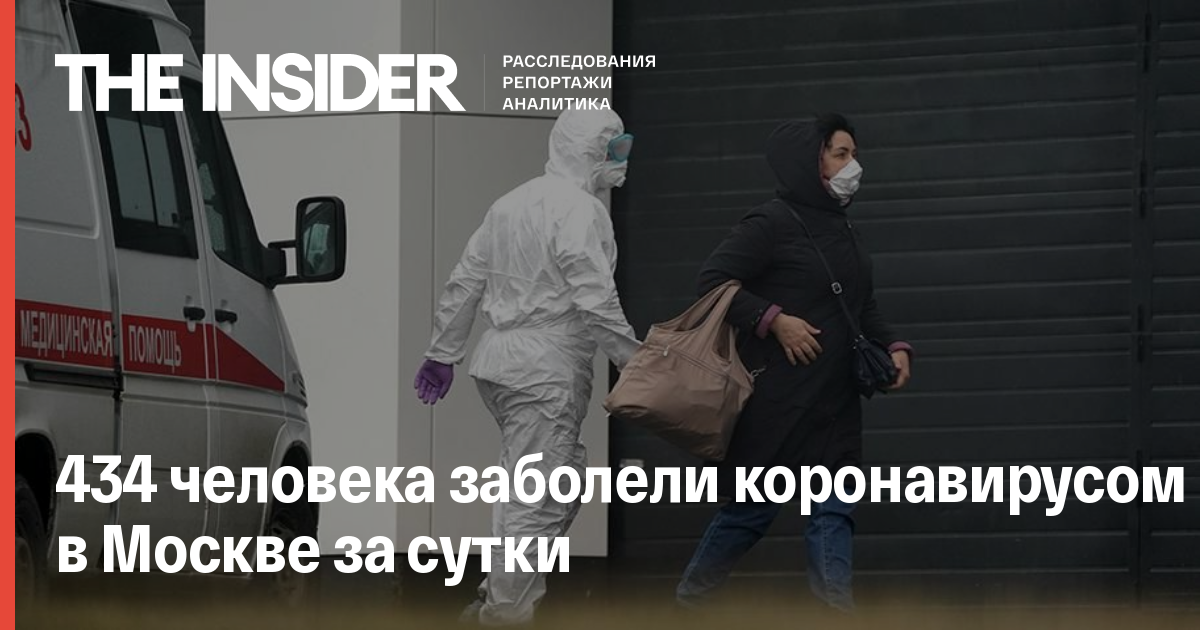 В Москве выявили 434 заразившихся коронавирусом, сообщает РИА «Новости». Почти половина новых заболевших - люди младше 45 лет, в том числе 14 детей.