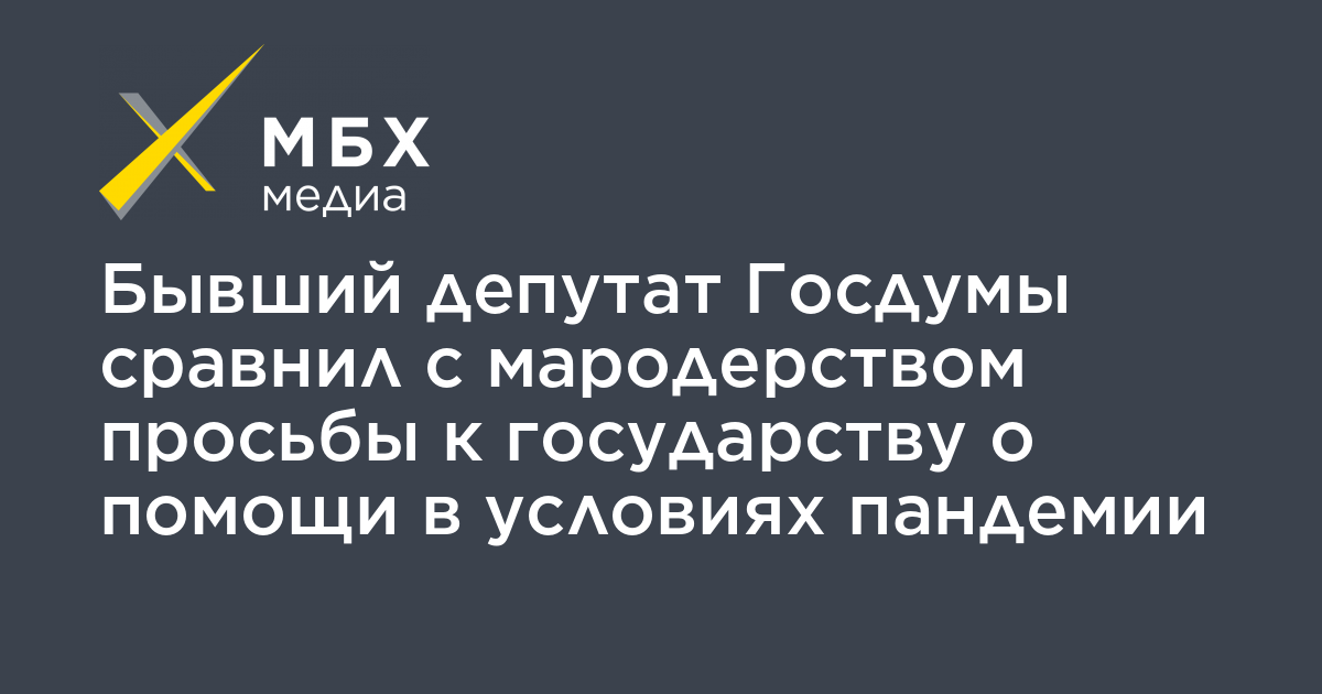 Бывший депутат Госдумы сравнил с мародерством просьбы к государству о помощи в условиях пандемии