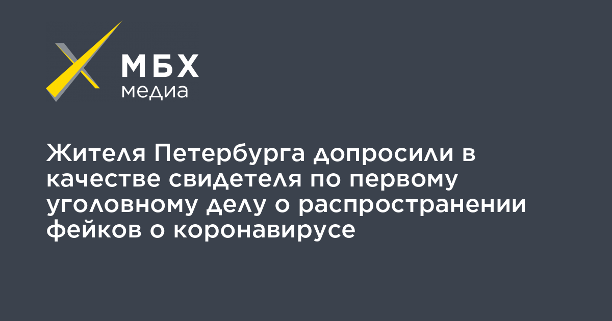 Жителя Петербурга допросили в качестве свидетеля по первому уголовному делу о распространении фейков о коронавирусе
