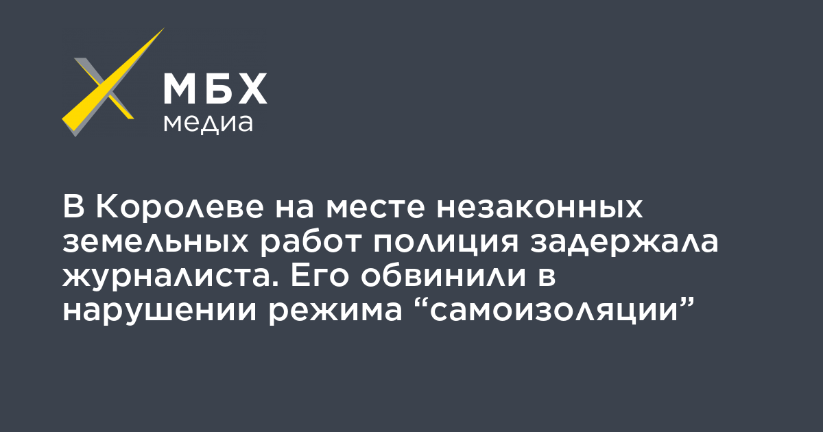 В подмосковном Королеве полиция задержала журналиста Романа Иванова, который готовил серию материалов о незаконных земельных работах в городе, ему вменили нарушение режима «самоизоляции», потому что он якобы стоял менее, чем в 1,5 метрах от другого человека, а также неповиновение полиции. Об этом рассказала «МБХ медиа» его жена Мария Некрасова.