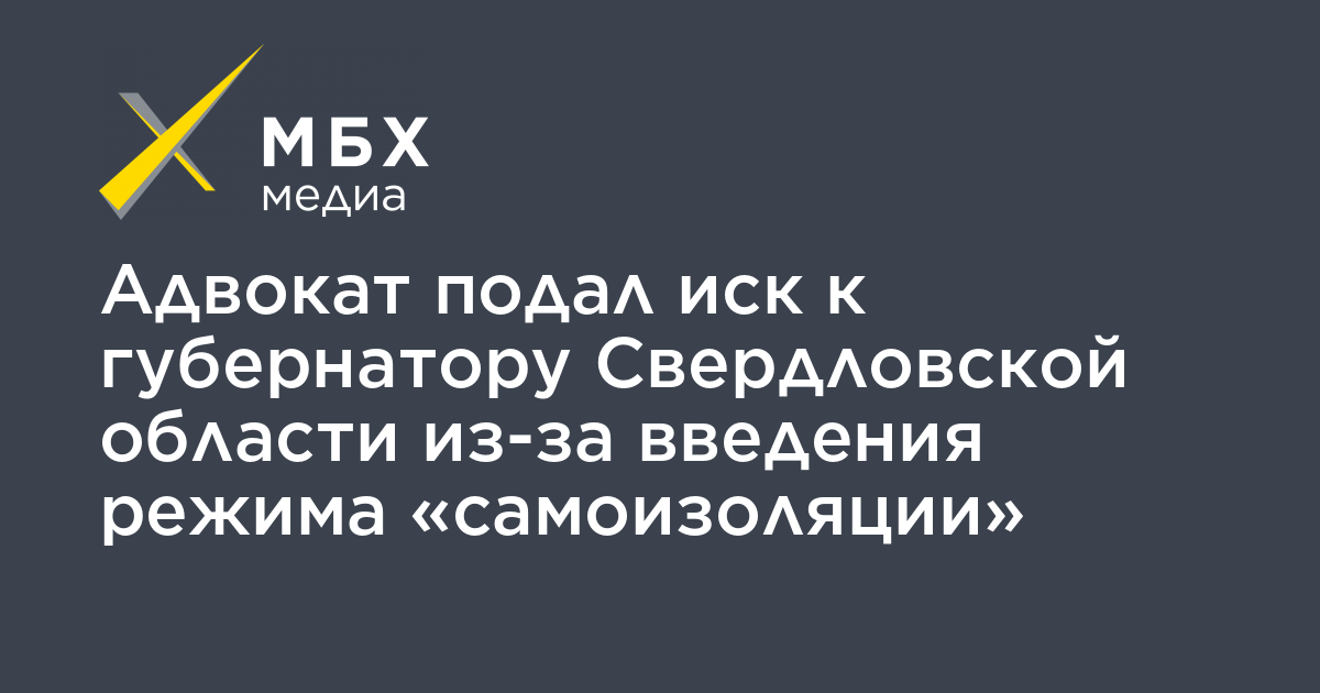 Адвокат международного центра правовой защиты «Global law» Антон Мамаев обратился в суд с иском к губернатору Свердловской области Евгению Куйвашеву из-за введения режима обязательной «самоизоляции». Об этом сообщает «Урал. МБХ медиа».