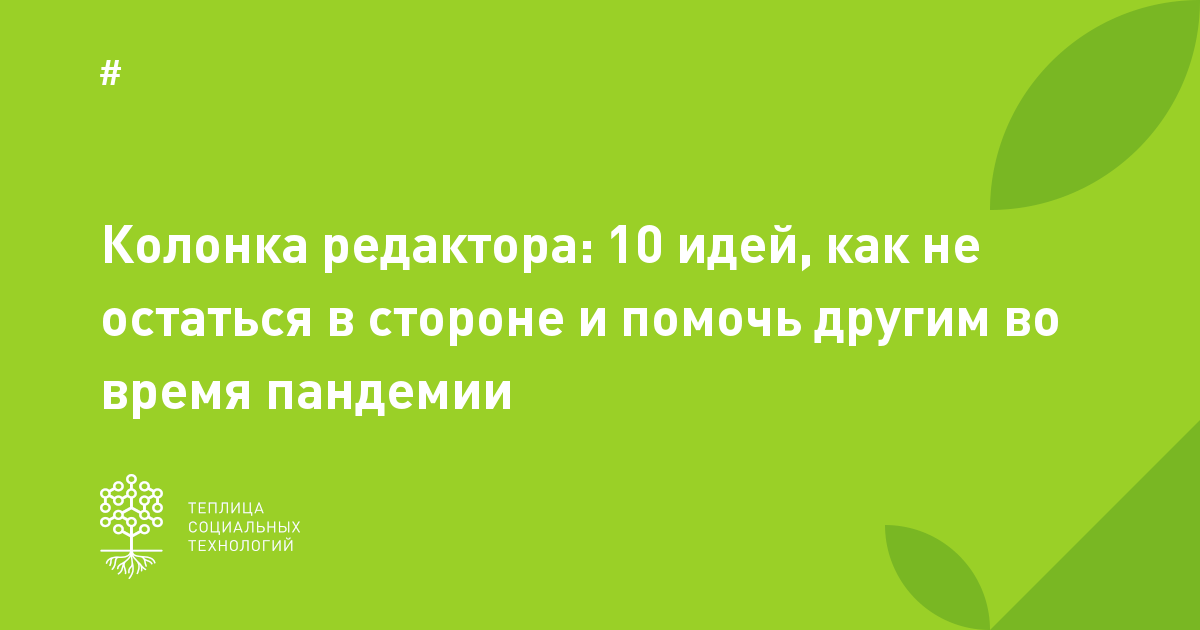 Колонка редактора: 10 идей, как не остаться в стороне и помочь другим во время пандемии